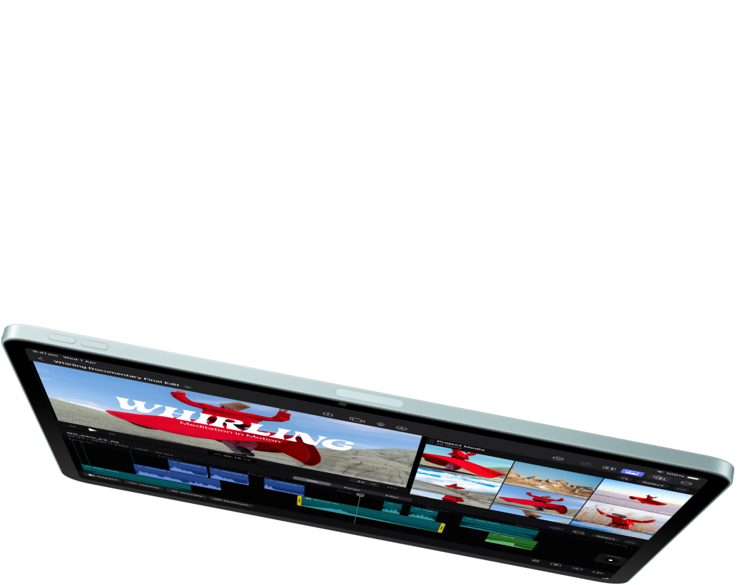 iPad Air in landscape orientation, showcasing video editing in Final Cut Pro