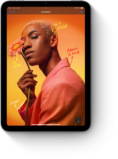 Avec iPad mini, vos documents numérisés se refont une beauté. La caméra détecte les documents grâce à l’IA. Et avec le flash True Tone, si une zone est plus sombre, la caméra capte plusieurs images et les fusionne pour créer un fichier haute qualité, sans ombres ni reflets.