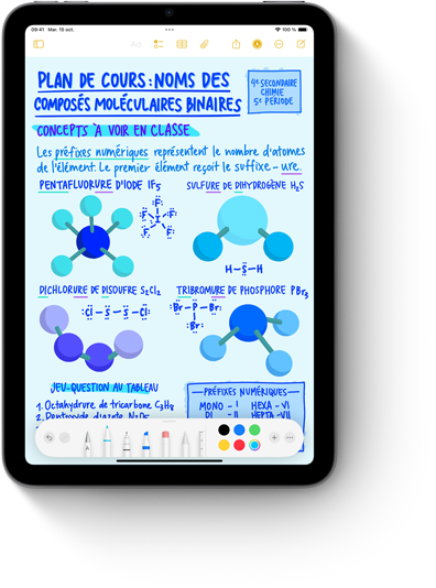 iPadOS fait d’iPad mini un outil encore plus polyvalent. Personnalisez votre écran d’accueil, soignez votre écriture manuscrite avec Smart Script et utilisez l’Apple Pencil pour évaluer des expressions et créer des graphiques dans Notes mathématiques.