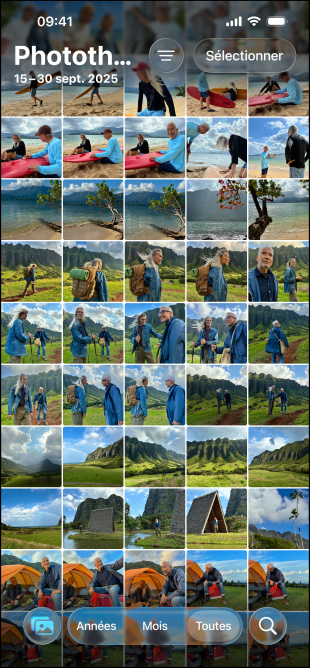 iPhone dix-sept-e, vue avant, montrant une série de photos dans la photothèque