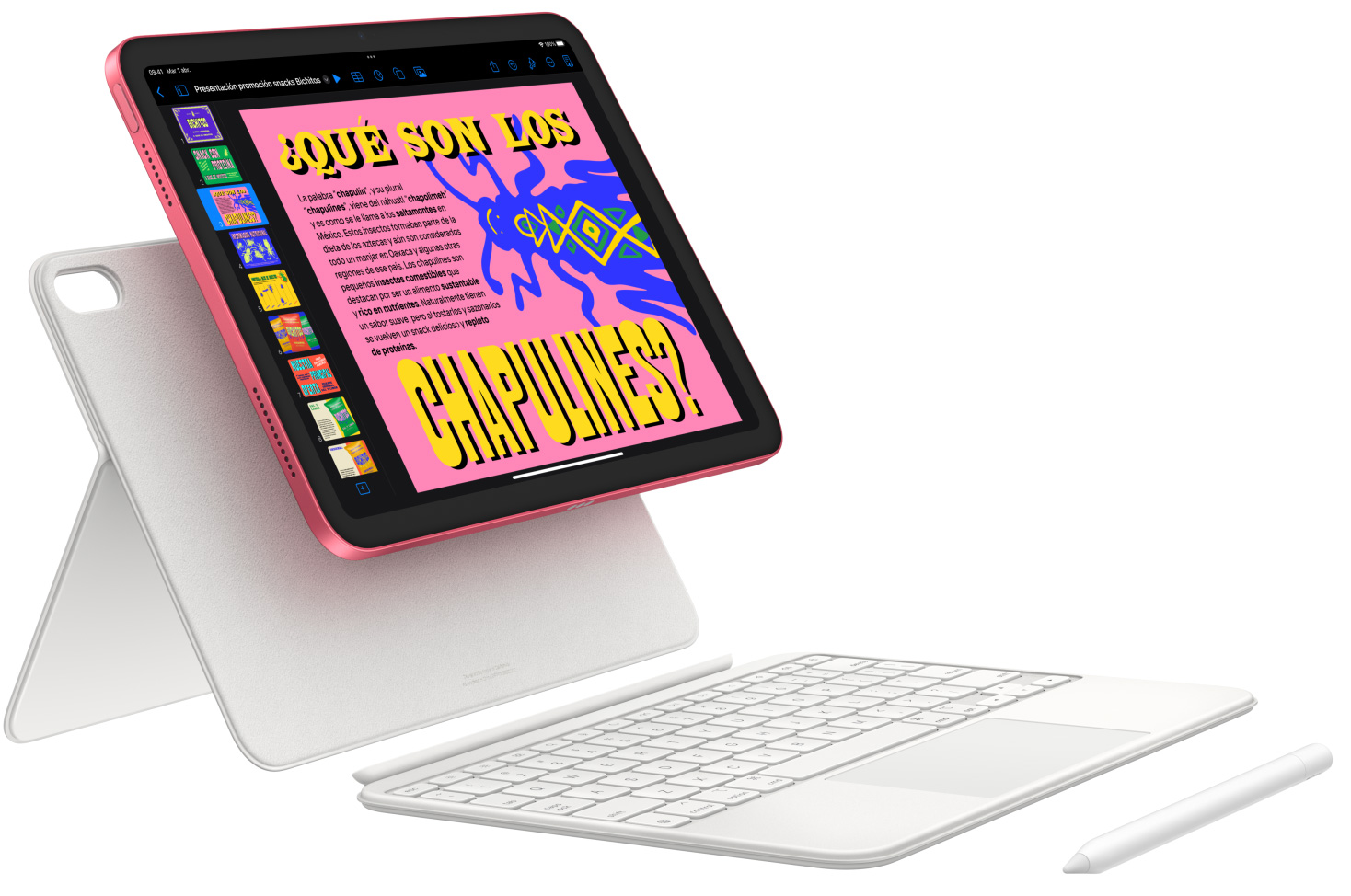 Dibuja, pinta y escribe con el Apple Pencil. Teclea con comodidad, desplázate por el trackpad y disfruta tu contenido favorito con el Magic Keyboard Folio y su genial diseño de dos piezas.2 Puedes usar los atajos de teclado que ya conoces y hacer clic en cualquier parte del trackpad. Juntos hacen magia.