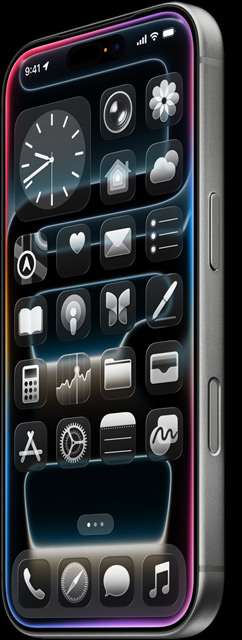 De nyeste iPhone-modeller er spækket med avancerede funktioner. Nyttige Apple Intelligence-funktioner som f.eks. visuel intelligens11 og Skriveværktøjer, der gør din hverdag nemmere. Og hurtige, sikre forbindelser med Wi‑Fi 7,12 Bluetooth 6, 5G-forbindelse13 og eSIM.14