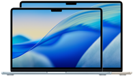 Un MacBook Air de 13 pulgadas y otro de 15 pulgadas, ambos semiabiertos. La pantalla del primero muestra un proyecto de diseño en curso, y la pantalla del segundo muestra una hoja de cálculo y la app Mail utilizándose al mismo tiempo. Un MacBook Air de 13 pulgadas y otro de 15 pulgadas, ambos semiabiertos. La pantalla del primero muestra un proyecto de diseño en curso, y la pantalla del segundo muestra una hoja de cálculo y la app Mail utilizándose al mismo tiempo.
