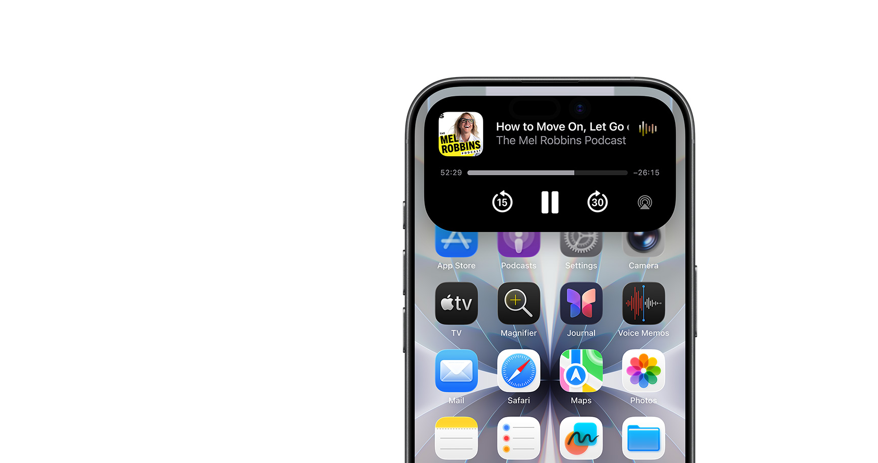 Desain iOS baru memantulkan dan membiaskan apa yang ada di bawahnya secara real time, beradaptasi secara dinamis dengan konten Anda di berbagai aplikasi dan perangkat.