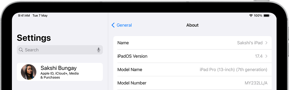 If you’re using iPadOS or iOS 12.2 or later, go to Settings > General > About > Model Name.