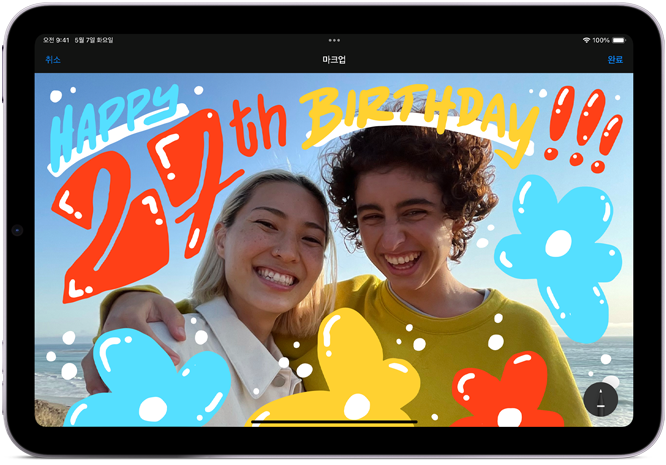 Apple Pencil Pro를 톡톡 두드리는 두 번 탭 제스처로 펜과 지우개 등 여러 도구 간 전환을 빠르게 실행할 수 있습니다.