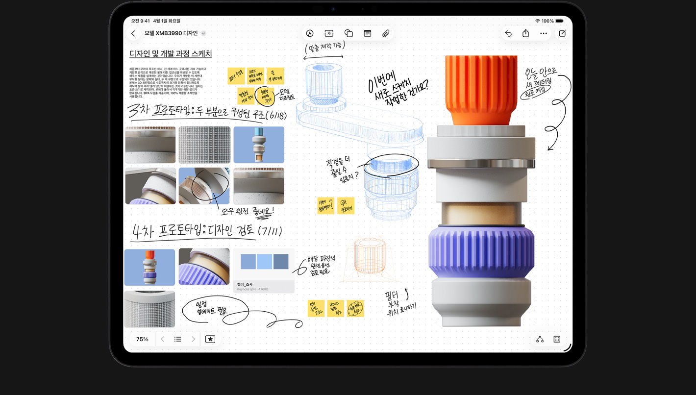 Apple Pencil Pro는 여기에 더욱더 많은 기능을 더해 전에 없던 방식으로 당신의 아이디어에 생명을 불어넣을 수 있게 해줍니다.2