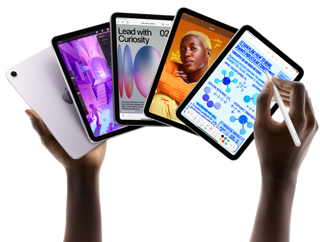 iPad mini has everything there is to love about iPad in a delightfully light, compact design. It features a 100 percent recycled aluminum enclosure and stunning all‑screen design, and it goes anywhere you go — fitting perfectly into a backpack or purse.