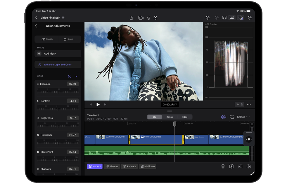 Captura y edita imágenes con HDR Inteligente y videos ProRes hasta 4K. Abre y manipula escenas 3D de gran tamaño. Y ejecuta modelos de IA más complejos, todo con apps profesionales.