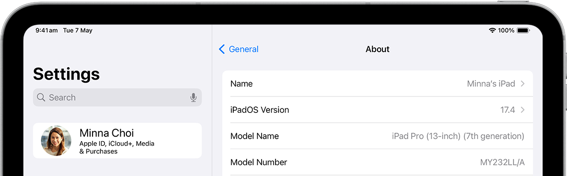 If you’re using iPadOS or iOS 12.2 or later, go to Settings > General > About > Model Name.