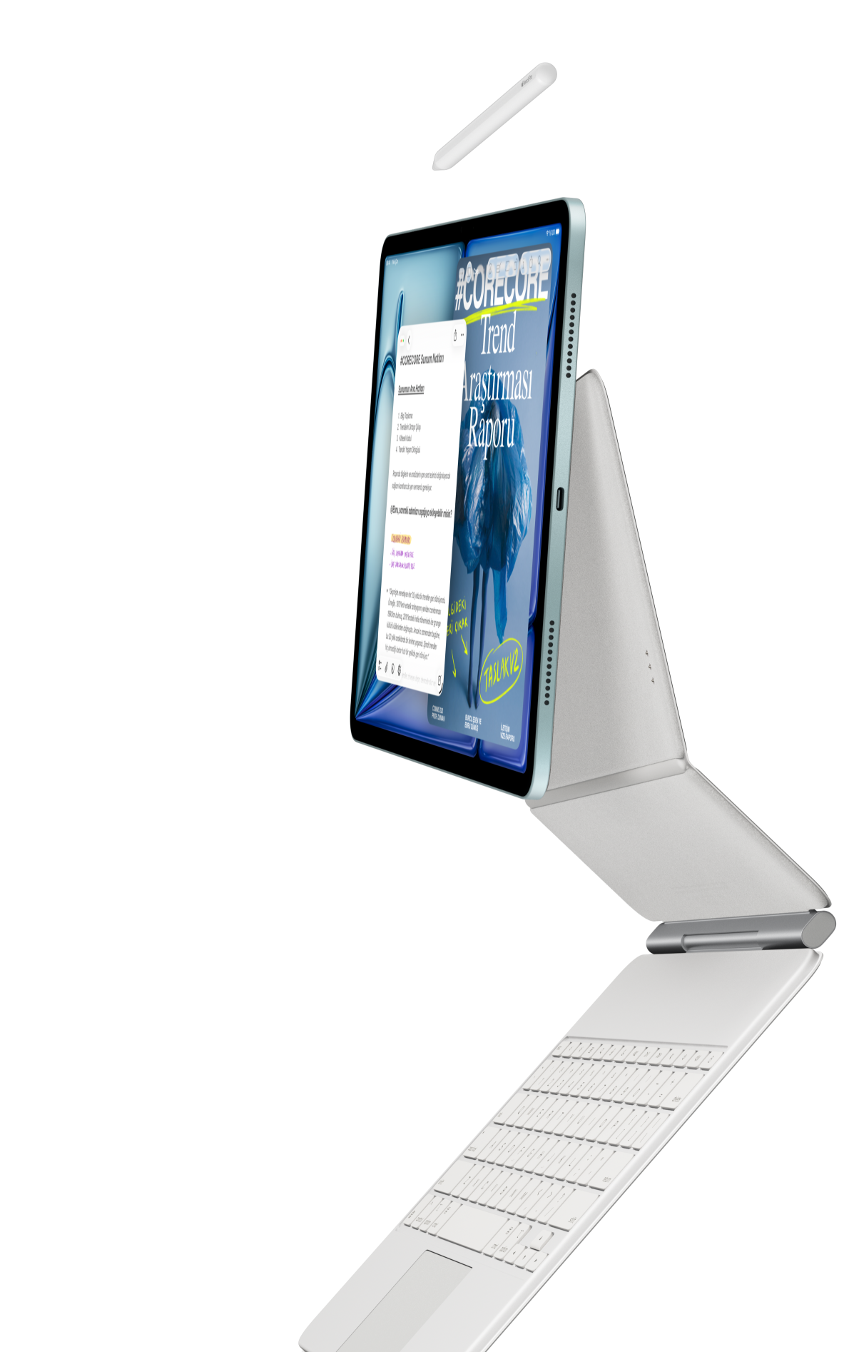 Yüzde 50 daha fazla birleşik sistem belleğine sahip ışık hızındaki M4 çip iPad Air’de yapmayı sevdiğiniz her şey için performansı bir üst seviyeye taşıyor. Aynı zamanda yapay zeka için bir güç merkezi. Her gün kullandığınız yapay zeka özellikleri ve becerileriyle işlerinizi daha hızlı ve zahmetsizce halletmenizi sağlıyor. Çalışırken, online video izlerken, yaratıcılığınızı gösterirken ya da oyun oynarken, GPU mimarisi size daha da akıcı gelişmiş grafikler sunuyor. Üstelik hepsini tüm gün süren pil ömrünün muhteşem verimliliğiyle yapıyor.4