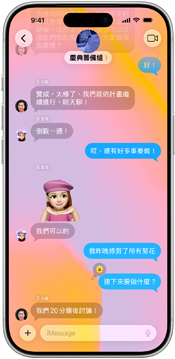 你可挑選絢麗的內建背景選項,或使用自己的任何照片,為「訊息」對話增添鮮明的個人風格。