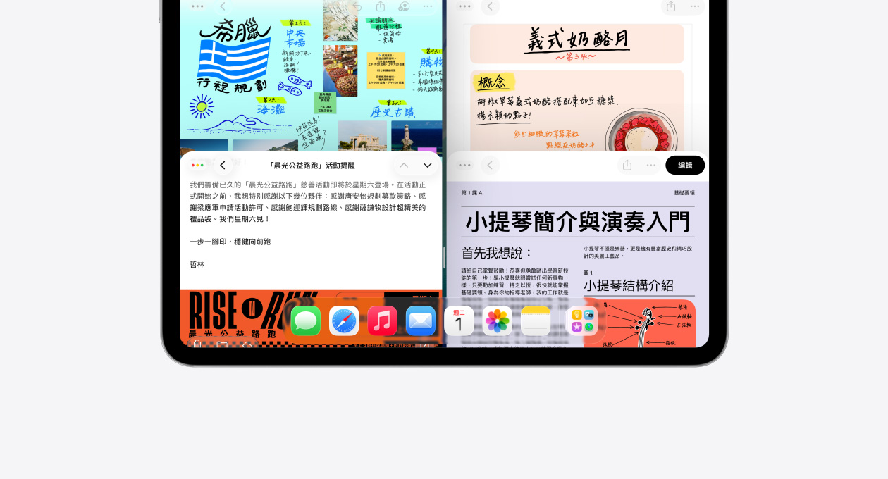 向左或向右滑動,就能調整視窗排列。現在,你還可以把 iPad 的螢幕分成三等分或四等分來使用。