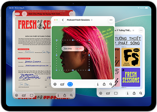 Sắp xếp các cửa sổ bằng cách vuốt nhanh sang trái hoặc phải. Giờ đây, bạn cũng có thể chia màn hình iPad thành ba hoặc bốn phần.