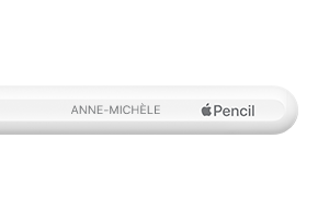 Apple Pencil (USB-C), Apple Pencil gravé sur le capuchon, le mot Apple étant représenté par son logo